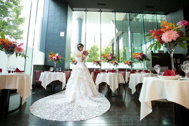 全面ガラス張りで天井高6メートルのとっても開放感溢れる素敵なレストラン。温かな太陽の光が差し込み明るいアットホームな店内には巨大なプロジェクターも準備されておりダイナミックな演出が可能となっております。。名古屋駅直結であることでゲスト様にとっても好アクセスです