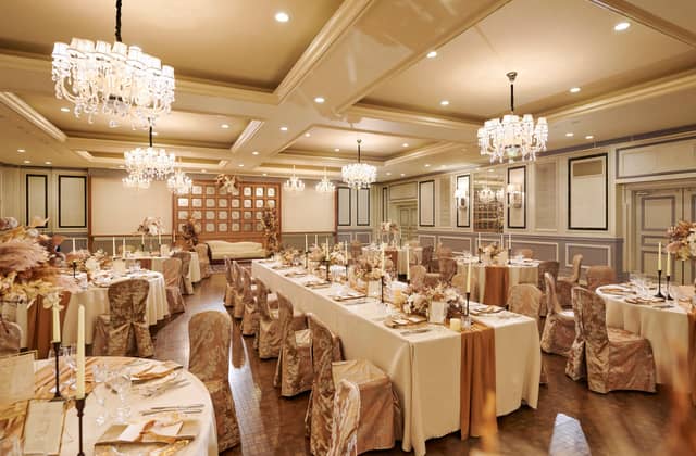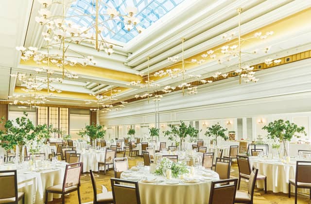 ご参加者様とやわらかで温かなお時間をお過ごしいただけるバンケット。開放感溢れる高い天井は開閉式で扉や壁も昇降し、おふたりらしさを表現することができます。