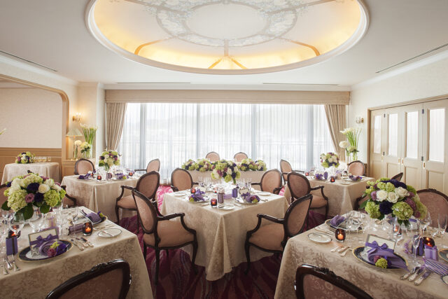 クラシックな雰囲気の会場に開放感ある「ベッセ・ボワール」では、上品で華やかなパーティーが叶います。そして、目の前に広がる瀬戸内海を眺めながら美味しい食事を食べられ贅沢な時間が過ごせると人気です。