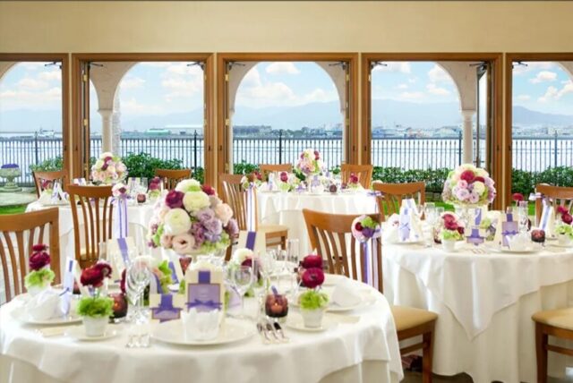 リーベリアでは、瀬戸内の海を眺めながら非日常的な空間でゆったりとお過ごし頂けます。また、全空間貸切だからこそ周りを気にせずアットホームなパーティーが実現します。また、イギリスのマンチェスター地方から移築された自然光の光が降り注ぐ独立型チャペルでの挙式も人気です。