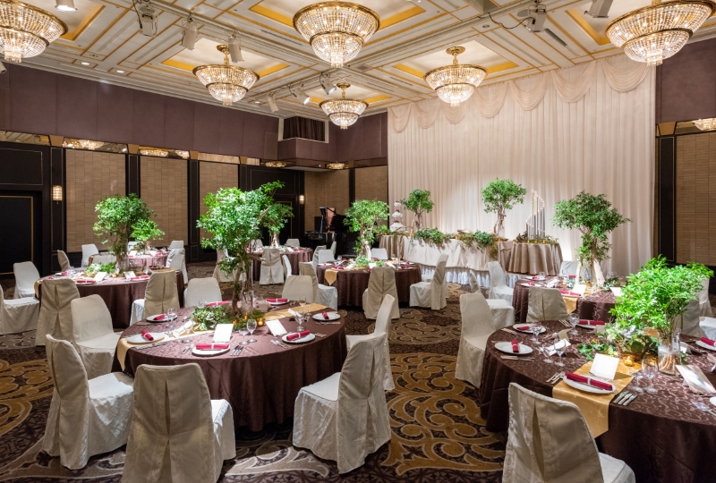 木目調の温もりあるチャペルでは、温かな挙式時間を過ごすことができる「名古屋ガーデンパレス」パーティー会場は、少人数から大人数まで対応可能な9つの会場を完備しており、イメージや招待人数に合わせてパーティー会場を選べると人気です。