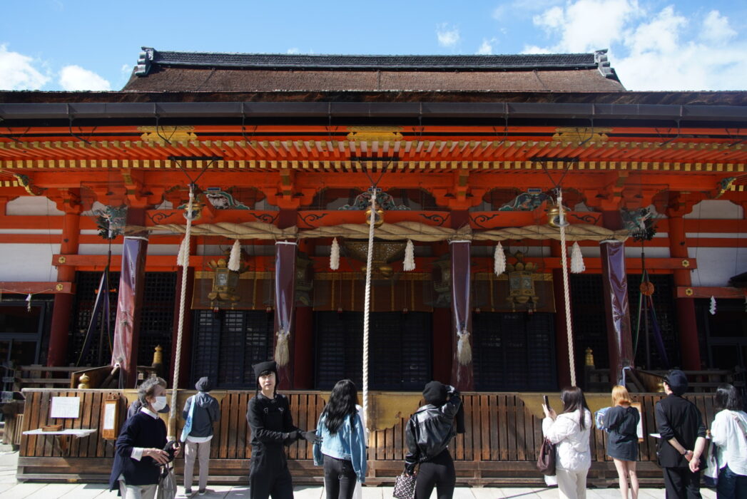 平安京遷都(七九四)以前より鎮座する古社で、「祇園さん」と呼ばれ親しまれております。 主祭神の素戔嗚尊(すさのをのみこと)はあらゆる災いを祓う神様として信仰されており、境内には数多くの神様をお祀りしております