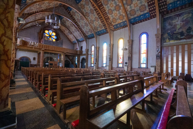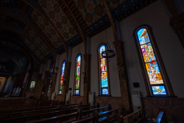 1948年創立のサレジオ教会は、潜入宣教師が遺した聖母画にちなみ「江戸のサンタマリア」に捧げられた由緒ある教会です。ロマネスク様式の堂内は、イタリア産大理石や美しい壁画、ステンドグラスが荘厳な空間を演出。初代神父から脈々と受け継がれる、聖歌や音楽の素晴らしい伝統も大きな魅力です。